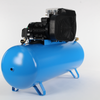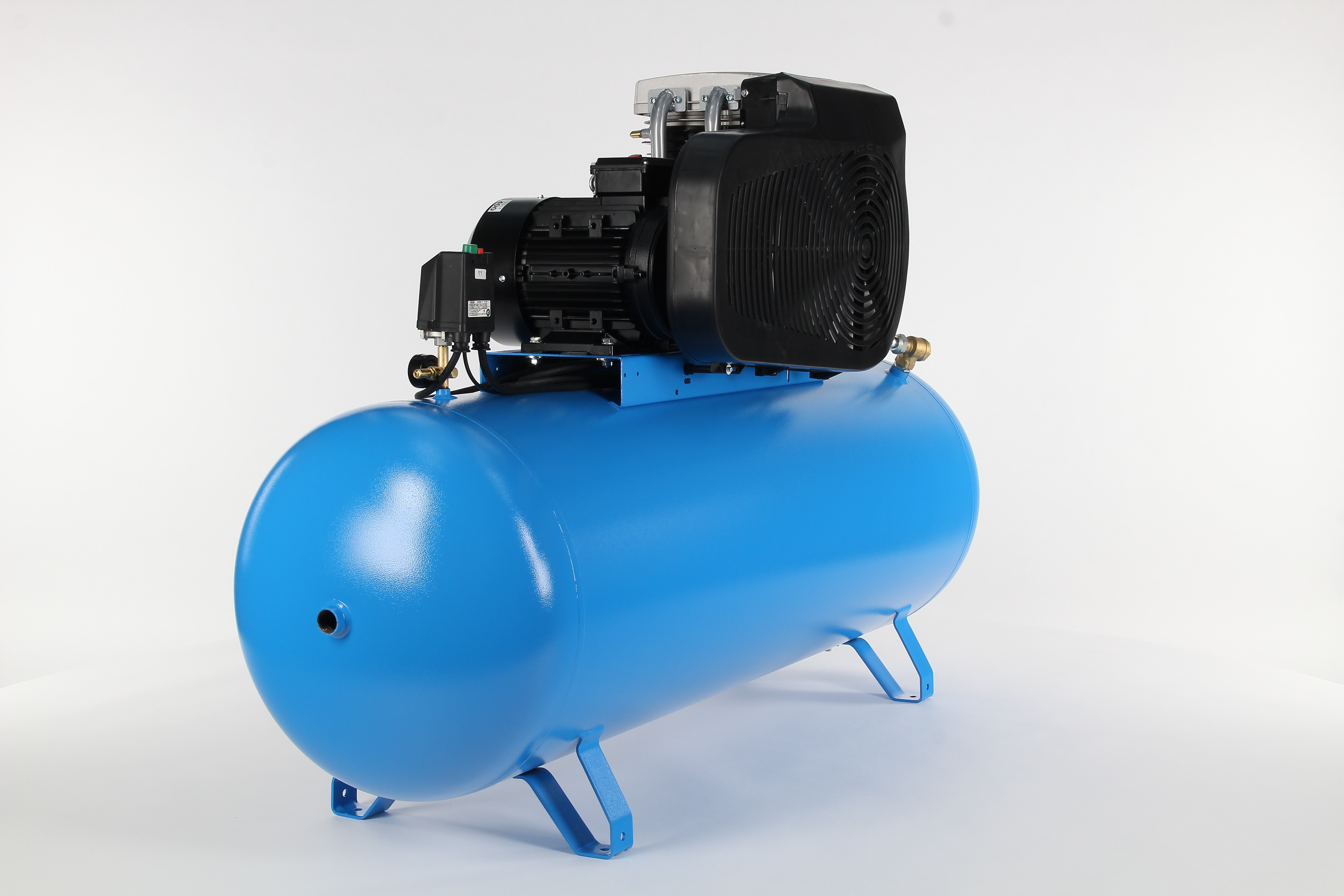 Dvostepeni klipni kompresor pogonjen kaišem, za upotrebu kako u industrijskim aplikacijama tako i u radionicama.